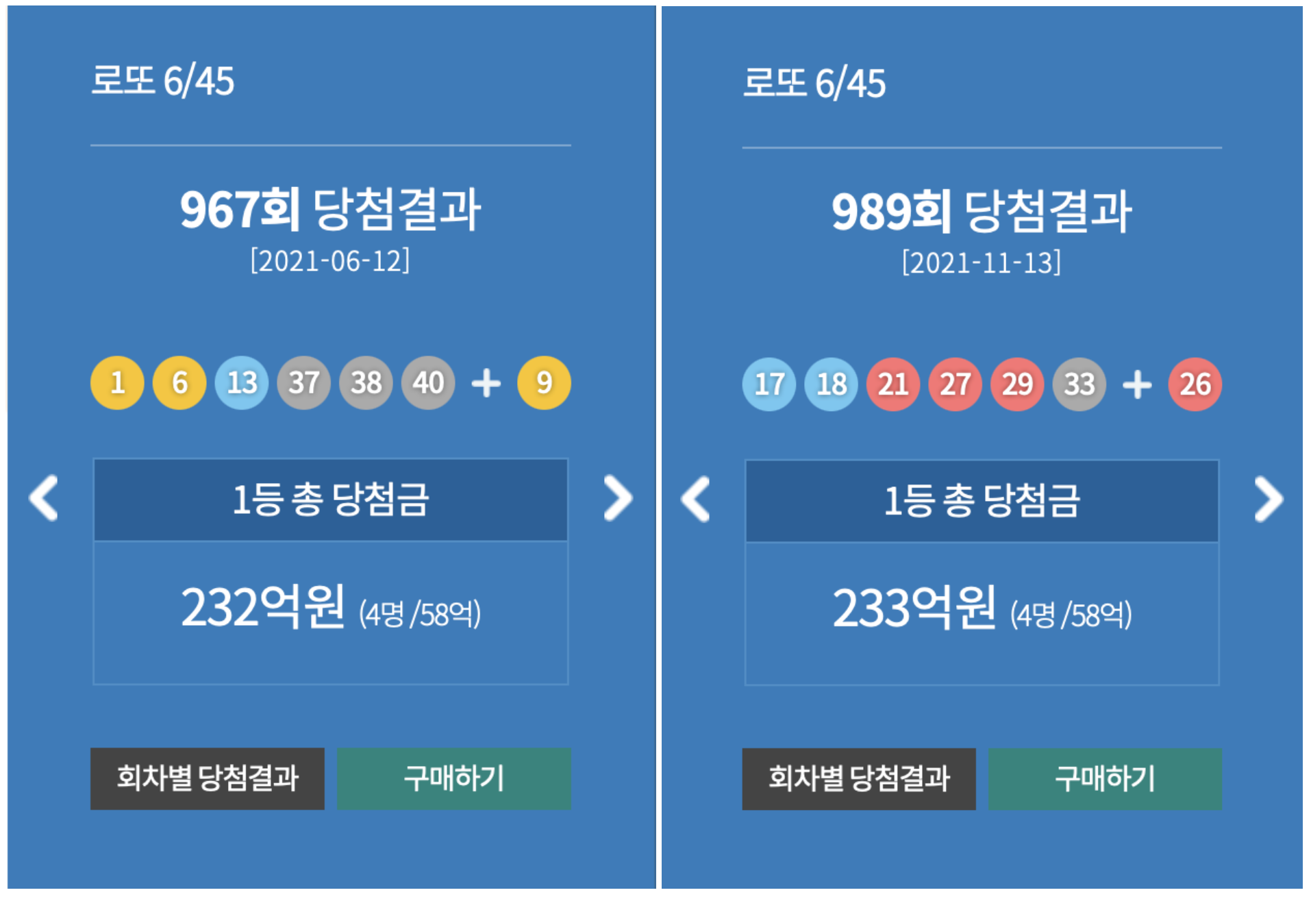 다음주에도 중복되는 숫자가 나오지 않을까 예상해봅니다.