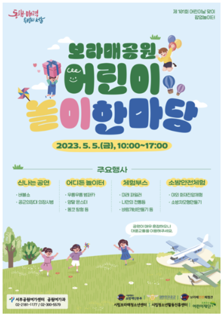 서울 동작구에 위치한 보라매 공원에서는 어린이날 초록우산 어린이 재단과 공동으로