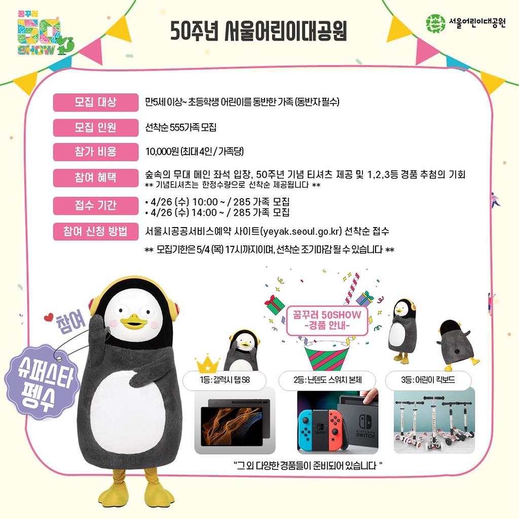 ▶ 접수기간: 4월26일(수) 10:00 ~ / 285가족