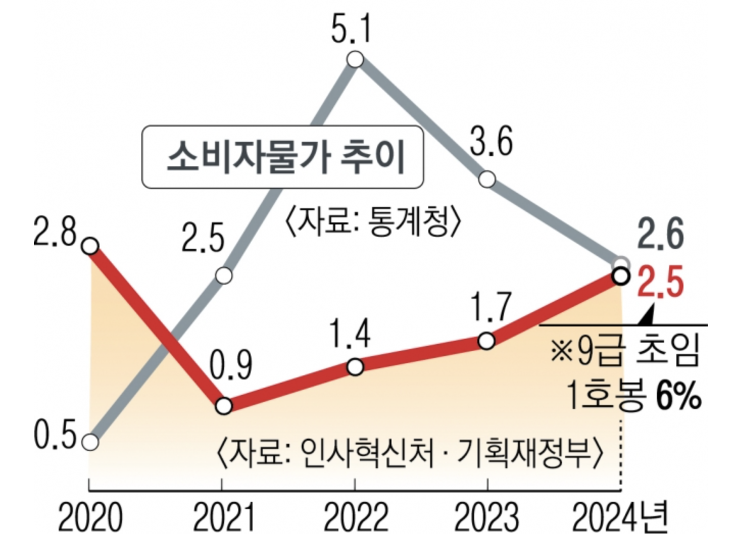 • 6급 이하: 약 3.3% 인상