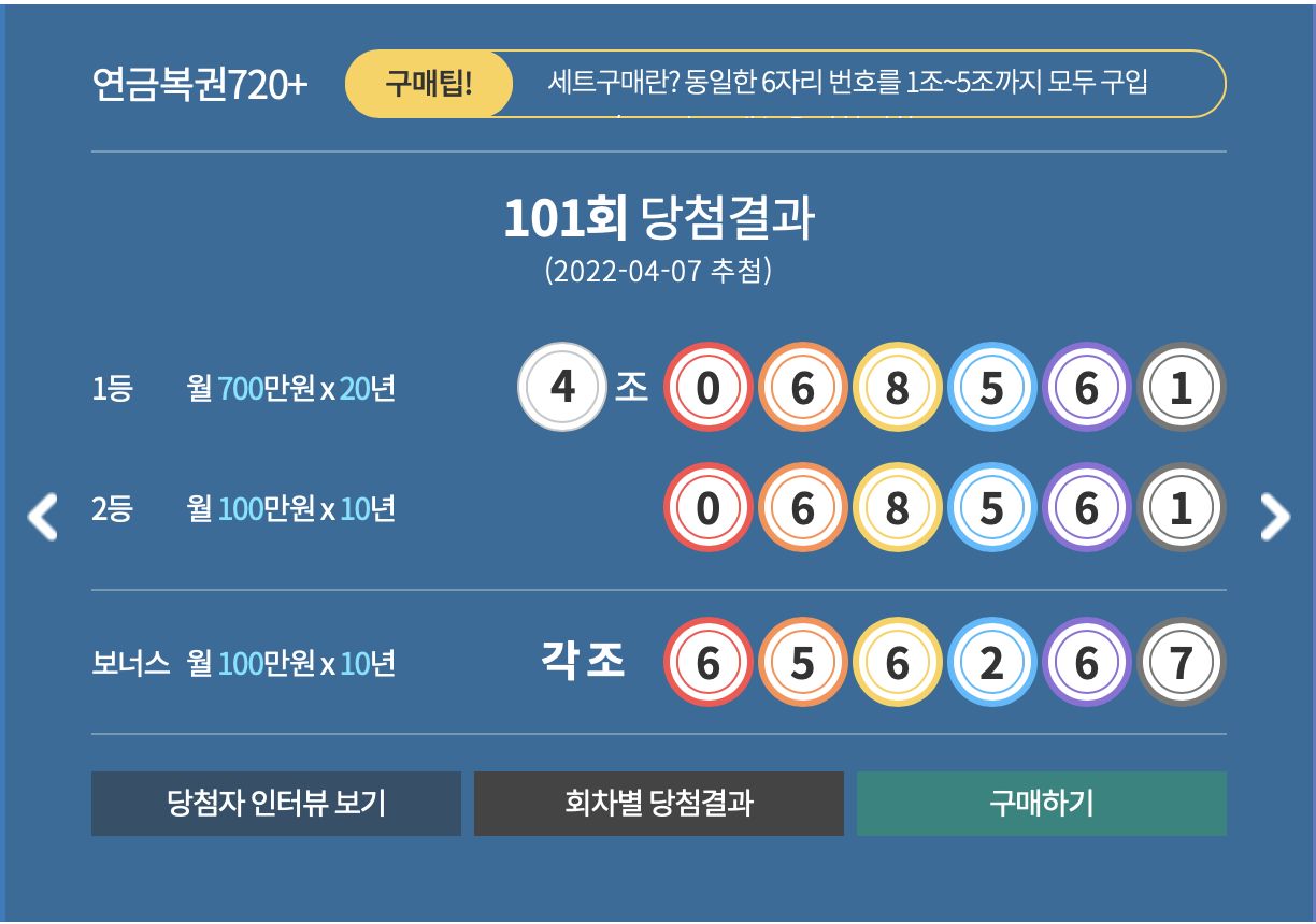 연금복권 1등 번호가 이번 회차에서는 전혀 중복된게 없습니다.
