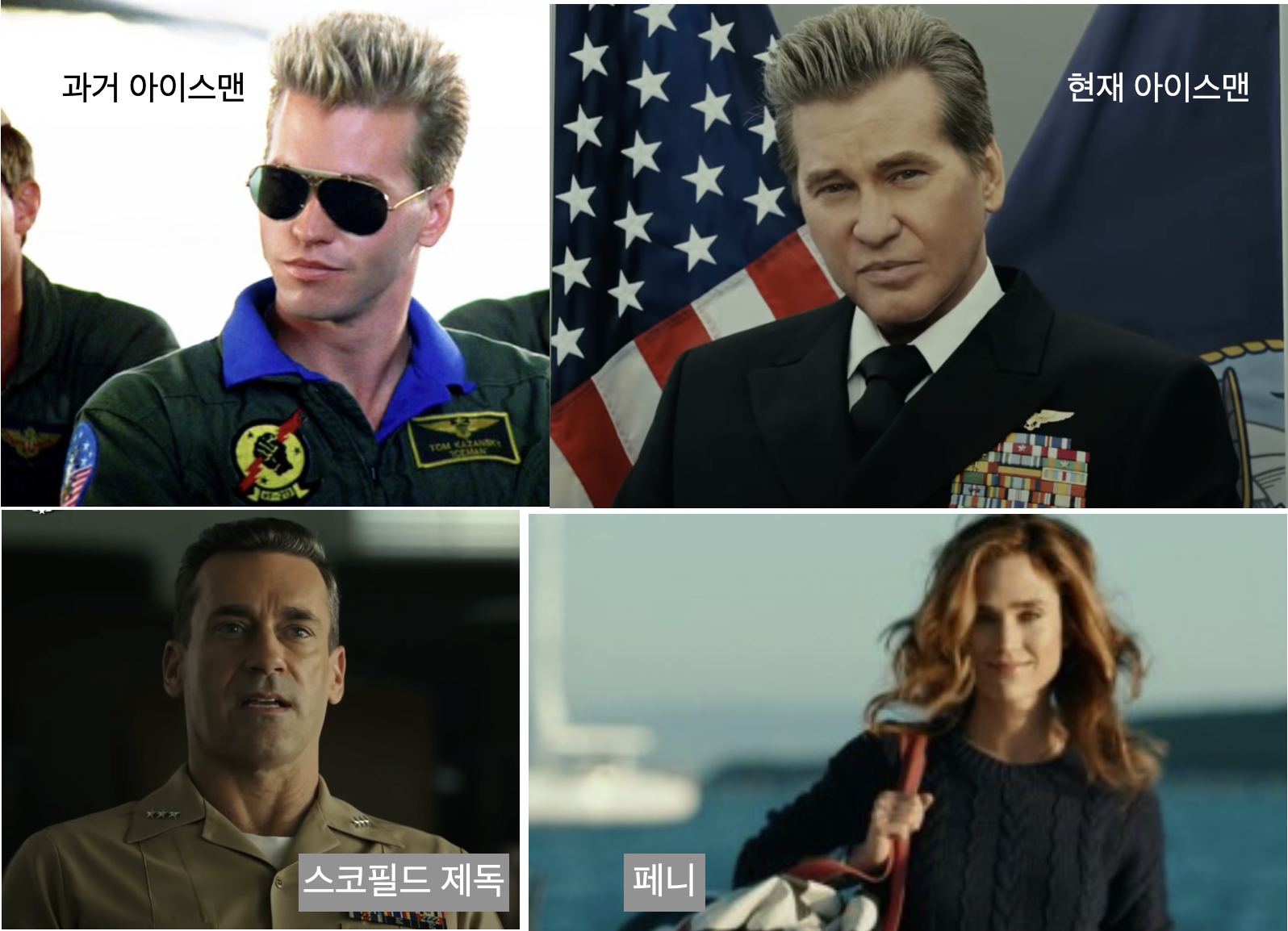 탑건1에서 매버릭의 경쟁자이자 동료였었고 현재는 제독이 된 아이스맨 역에 발 킬머