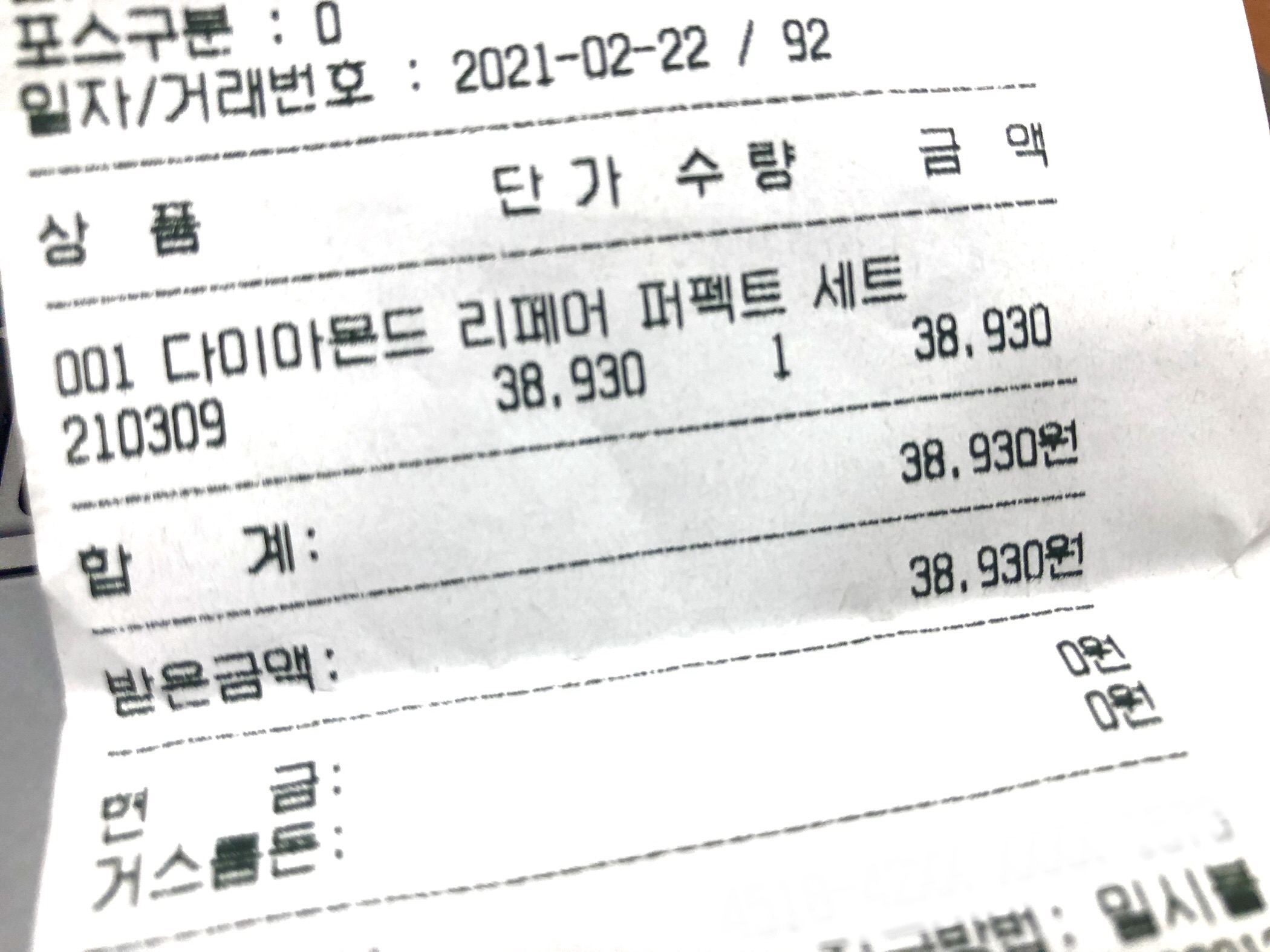 군 PX에서 구입한 본에스티스 다이아몬드 리페어 퍼펙트 세트는 38,930원입니다.