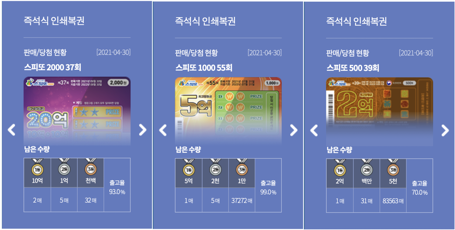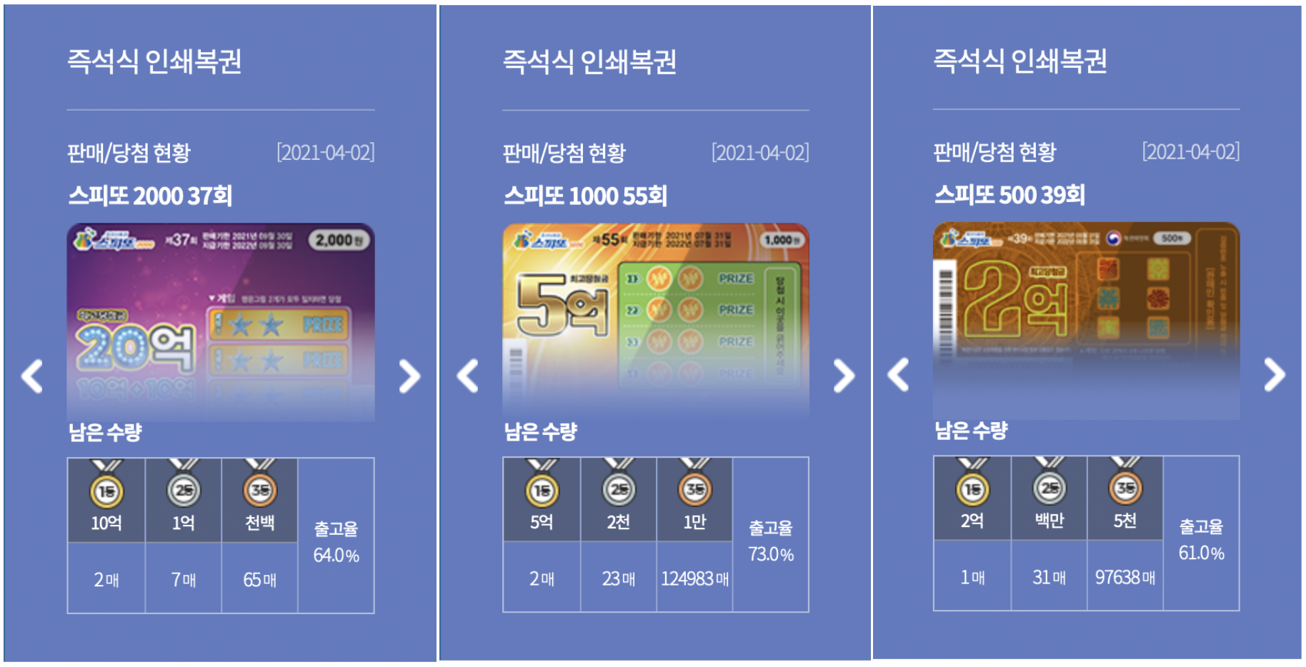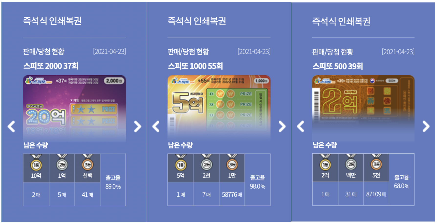 1등 5억원이 아직도 6장이 남아있으니 도전해보실만합니다.