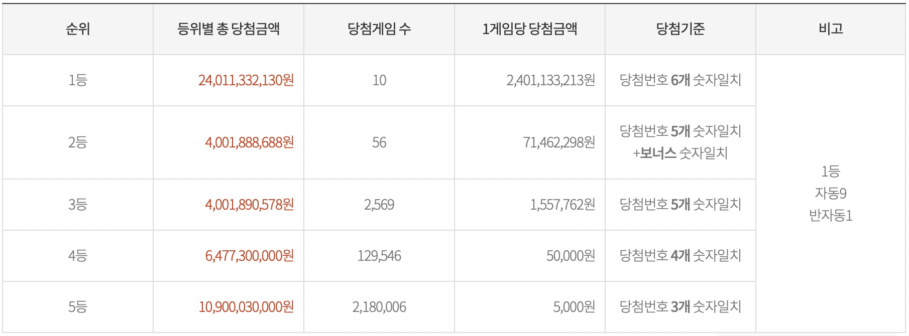 당첨자가 10명이나 되어 1등 당첨금액도 약 24억 1천만원입니다.