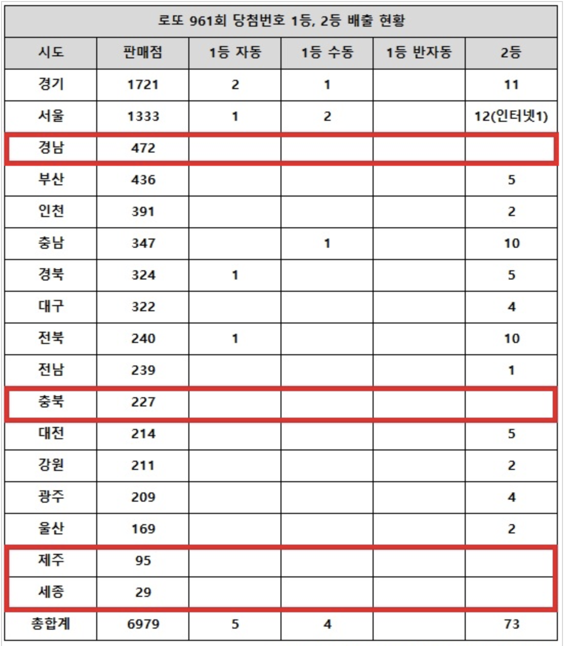 그리고 대구에서 1곳, 경기 광명시, 경기 성남시, 경기 수원시에서 각각 당첨자가 나왔고