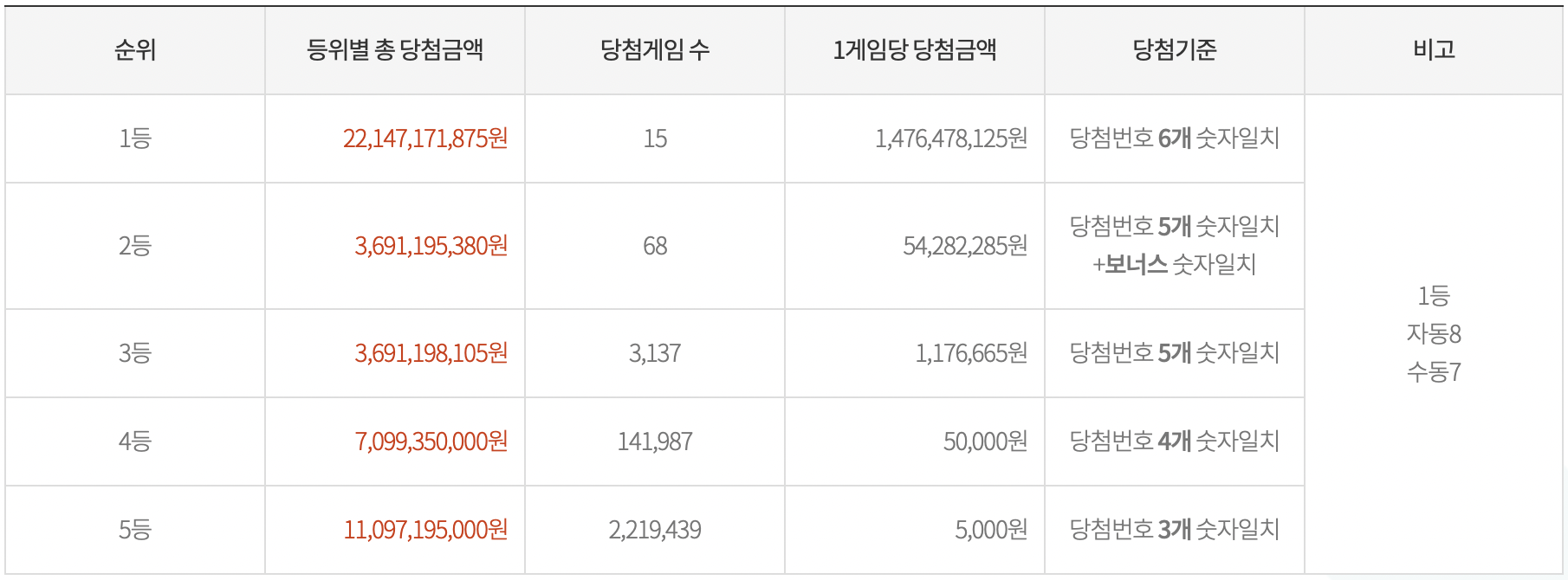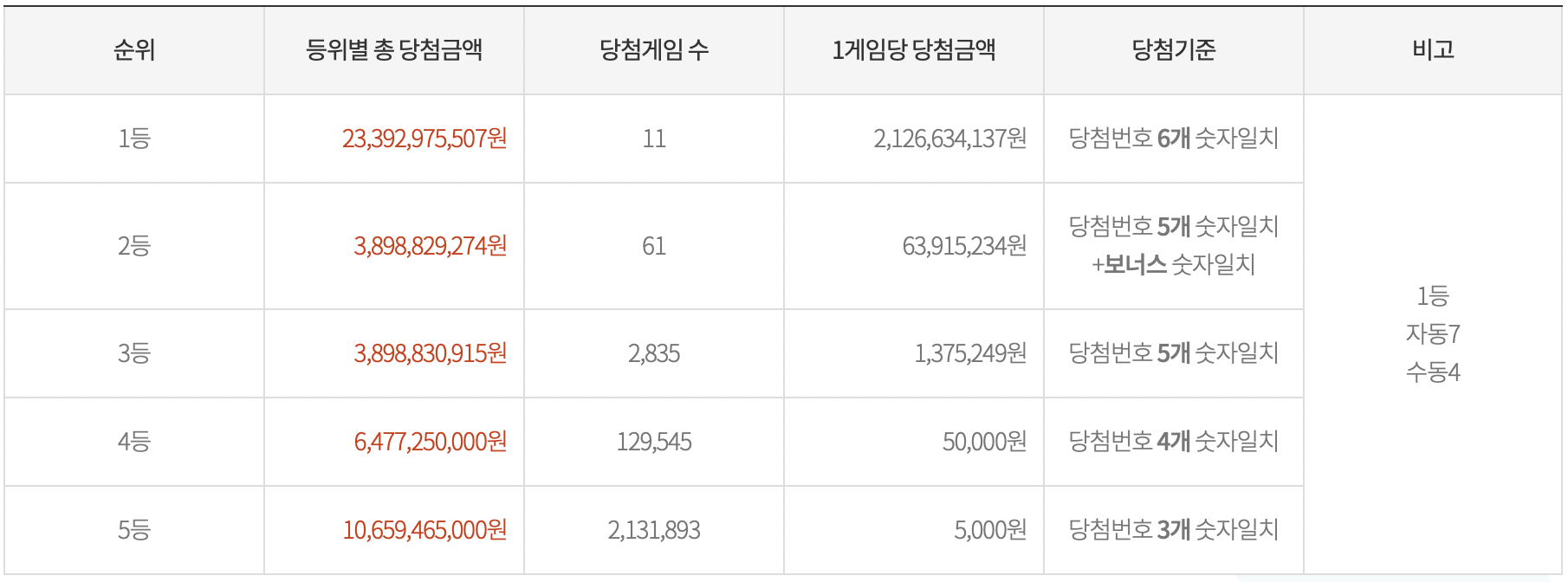 1등 당첨금액도 20억원대로 낮아졌습니다.