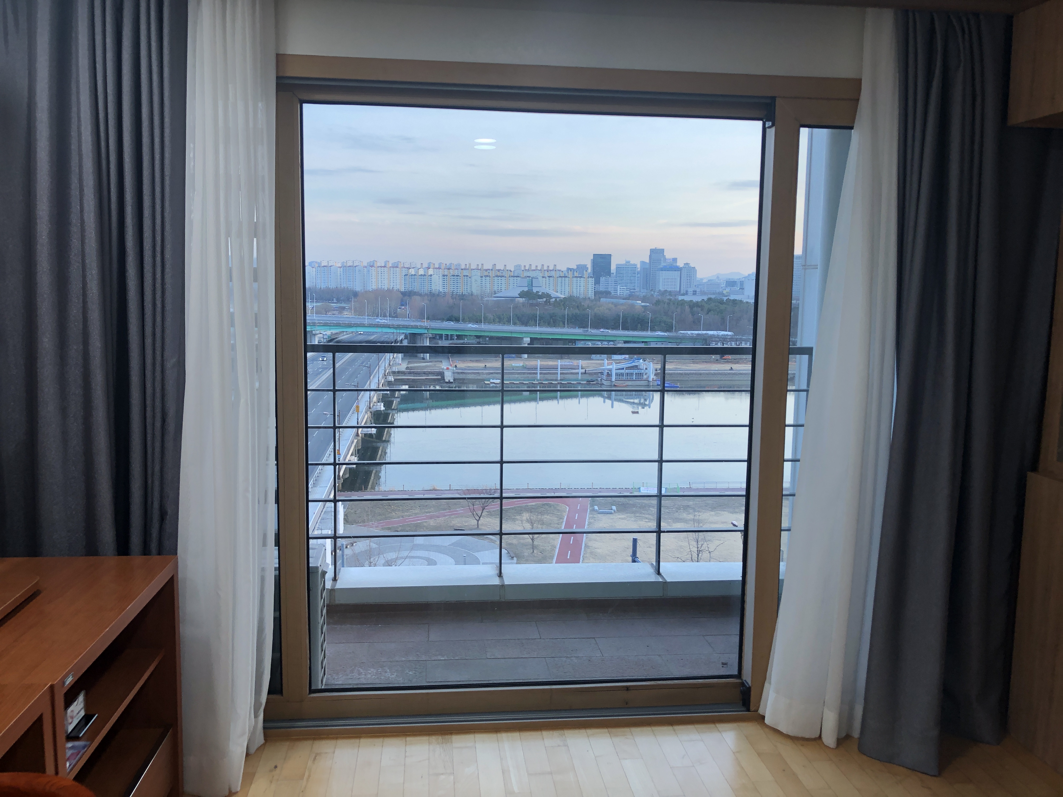 갑천아래를 내려다 보고 있는데 8층 객실의 풍경은 보기 좋습니다.