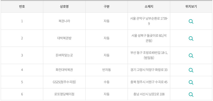 대구, 인천, 광주, 대전에서도 각각 1군데서 1등 당첨자가 나왔습니다.