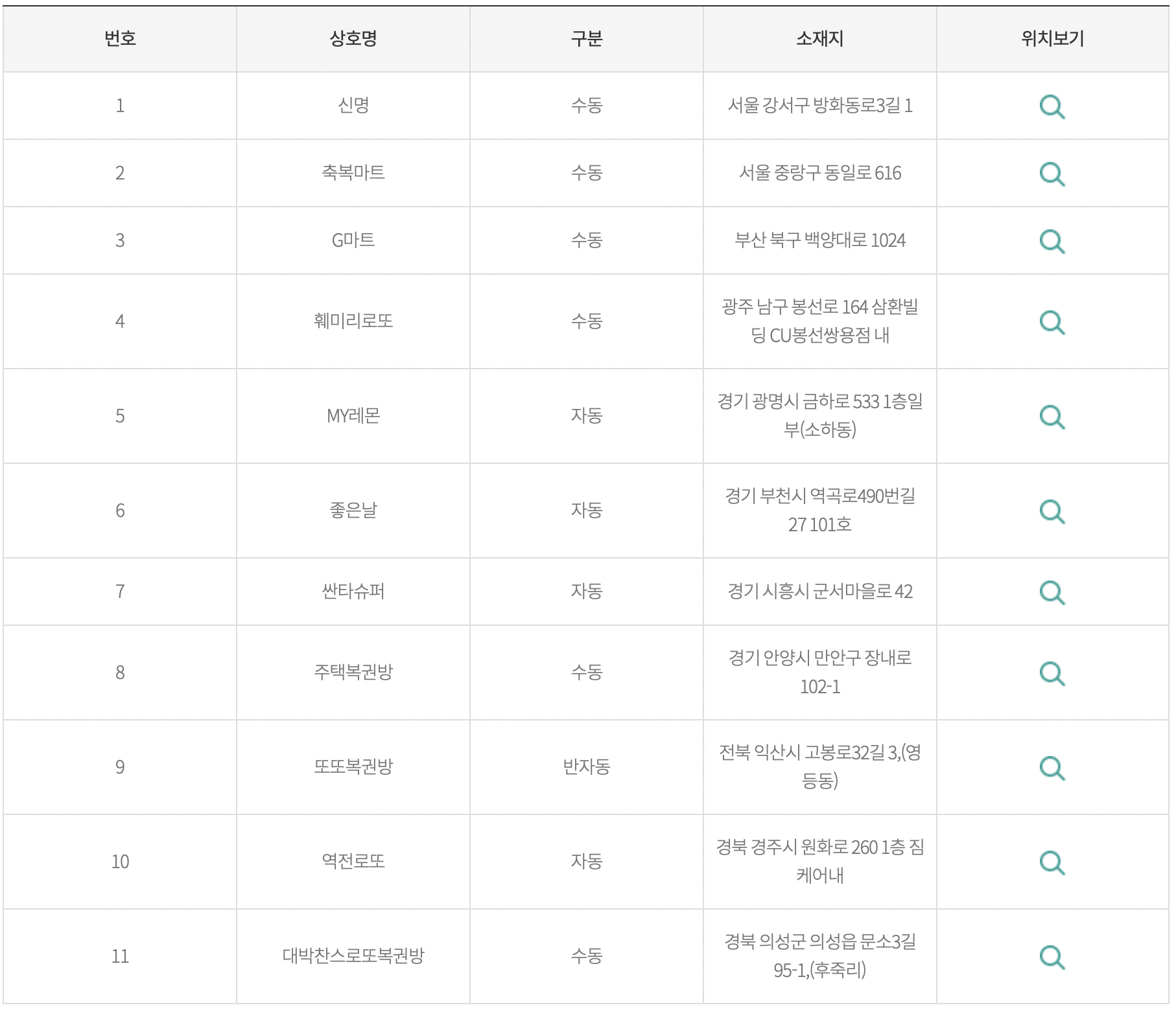 이번주 로또 당첨지역입니다.