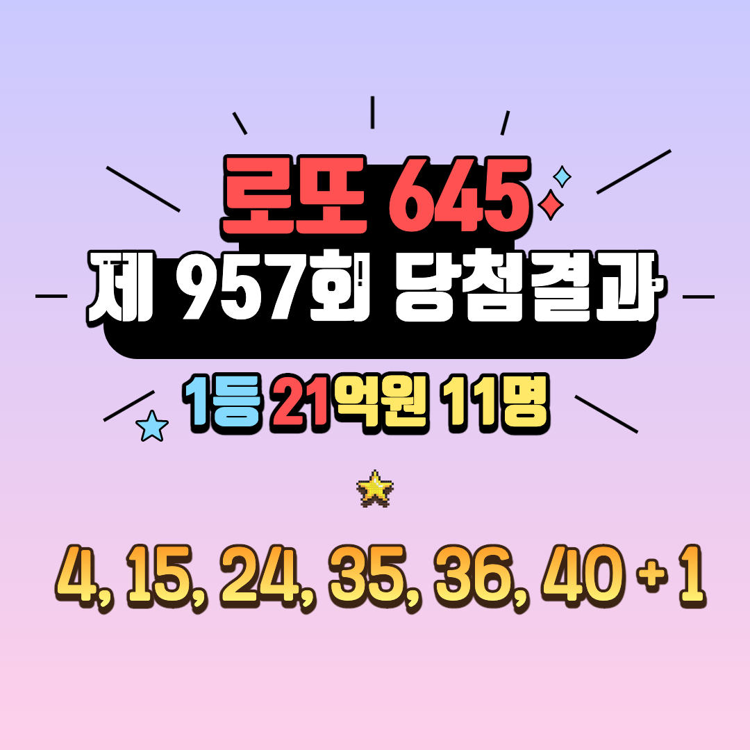 ♣ 제 957회 로또 1등 당첨번호 ♣