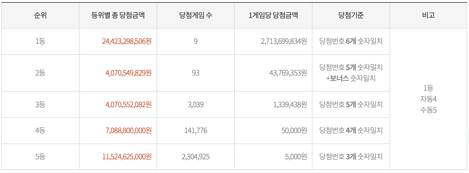 ■ 로또 1등 당첨금액 및 당첨자