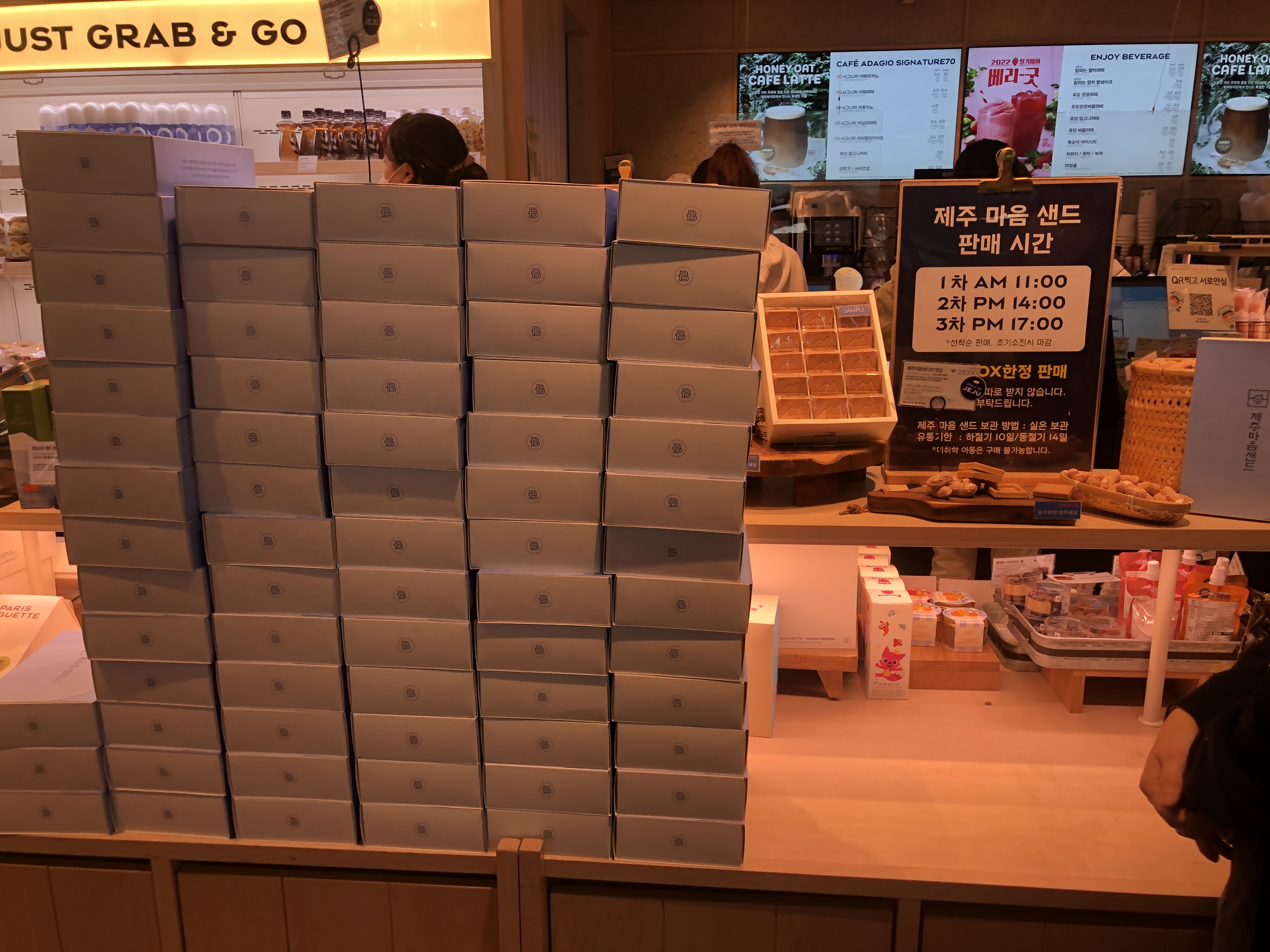 제주 마음 샌드라고 해서 1인 2박스 한정으로 판매하고 있습니다.