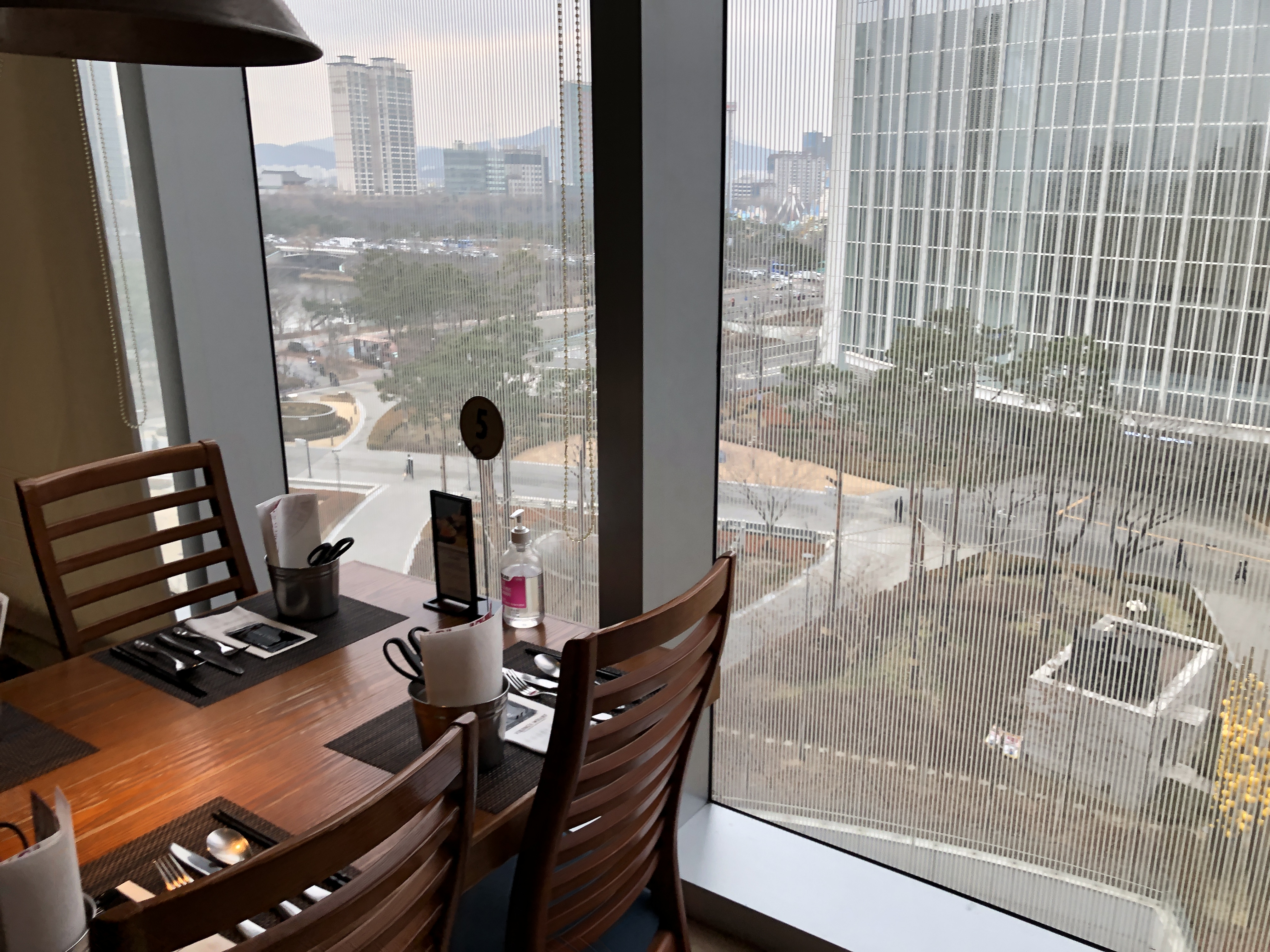 약간 격리된 공간에 테이블을 예약해 주십니다.