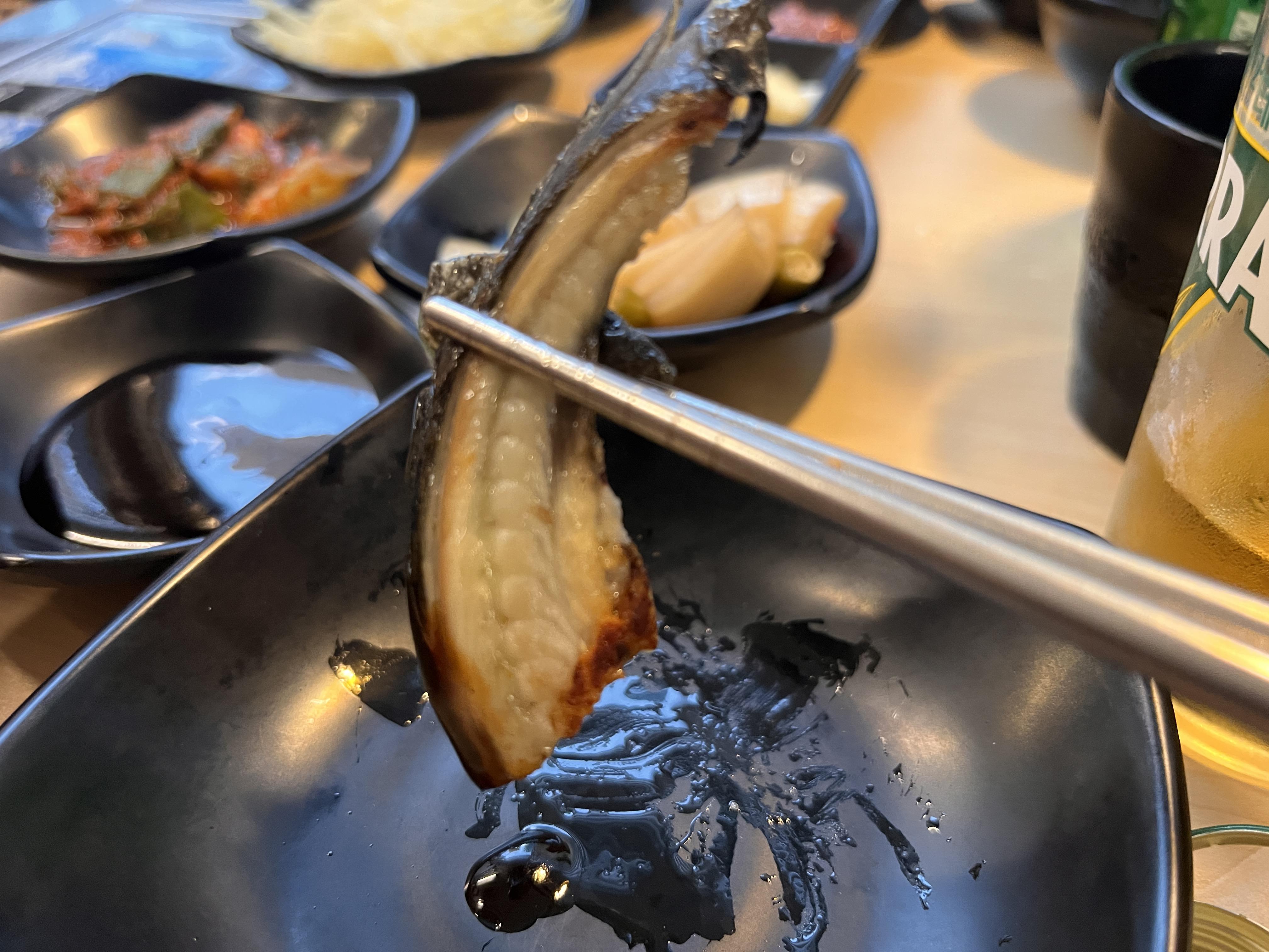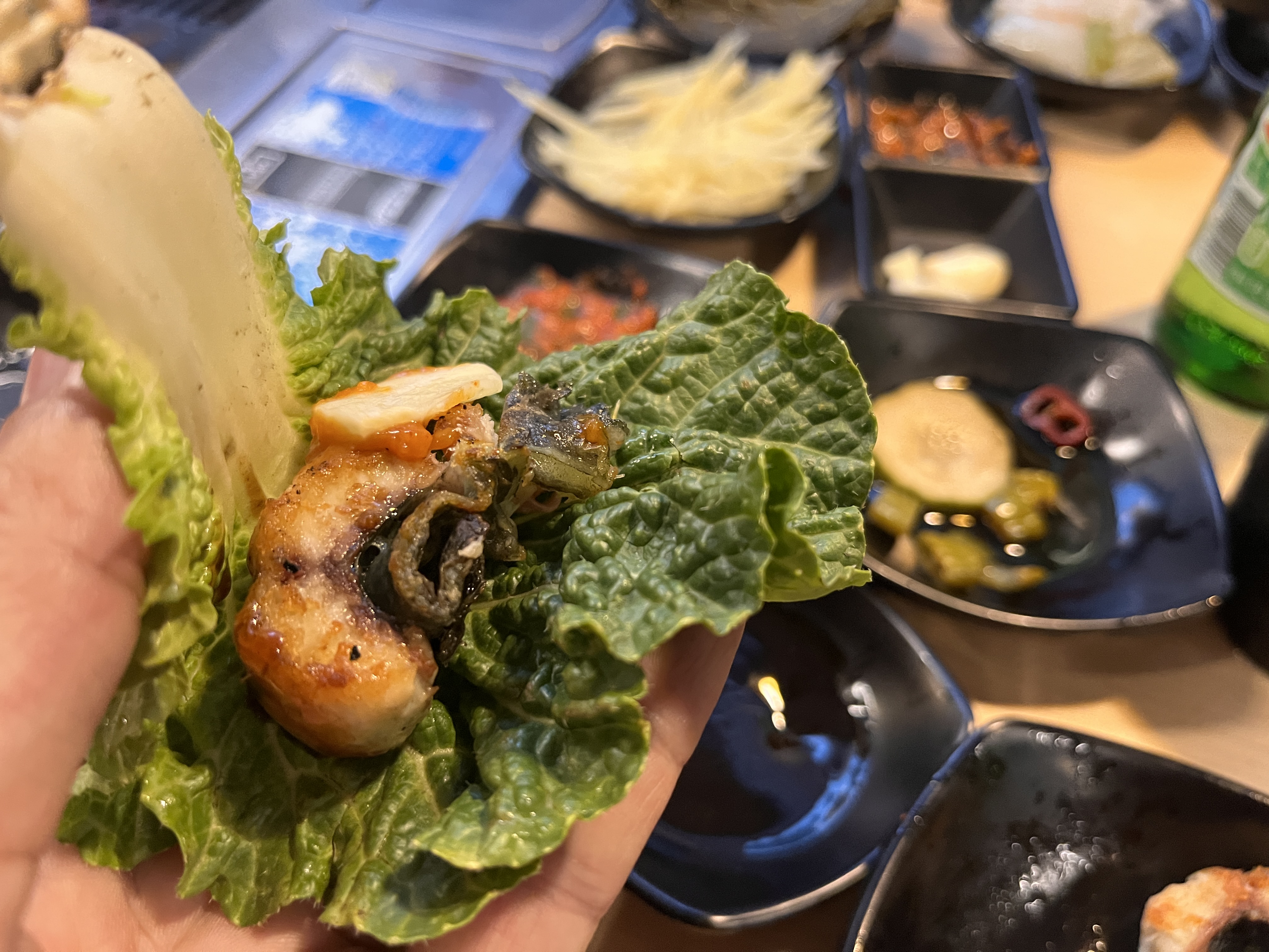 한마리만 불판에 올라가도 불판이 가득한 모습입니다.