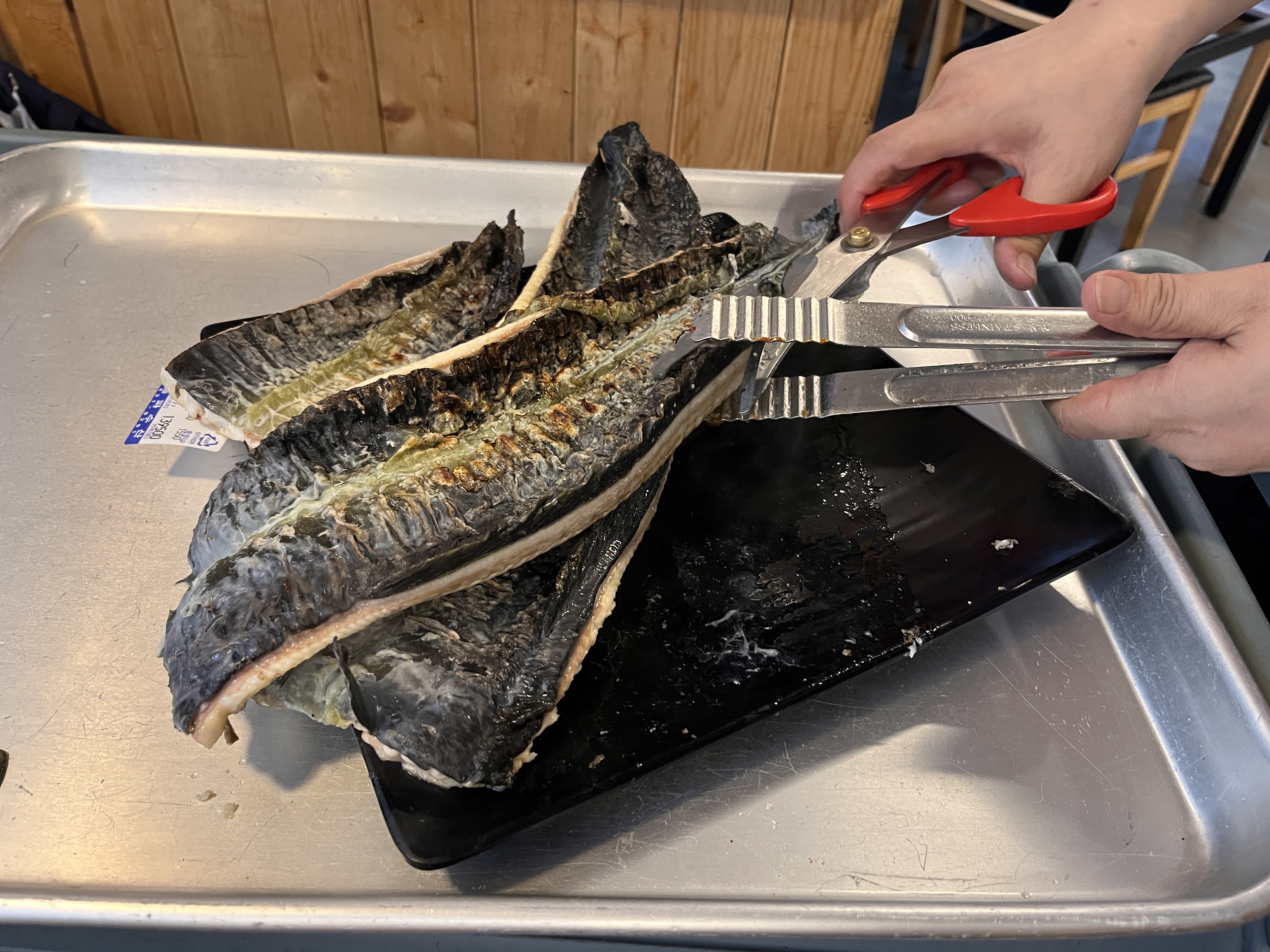 1차 초벌구이한 장어를 등지느러미 등을 정리하고