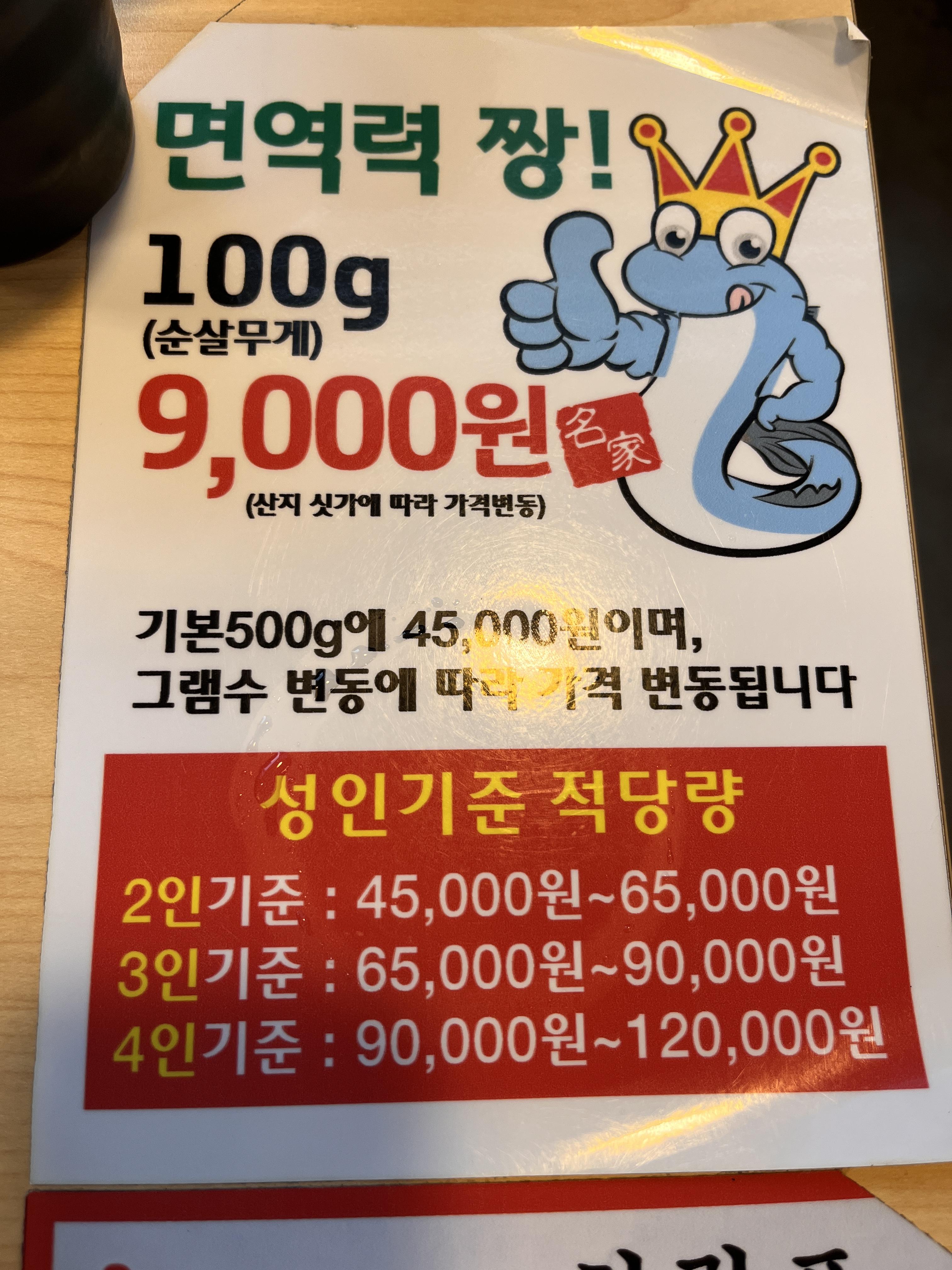 그래서 사장님은 무태장어는 클수록 맛있다고 합니다.