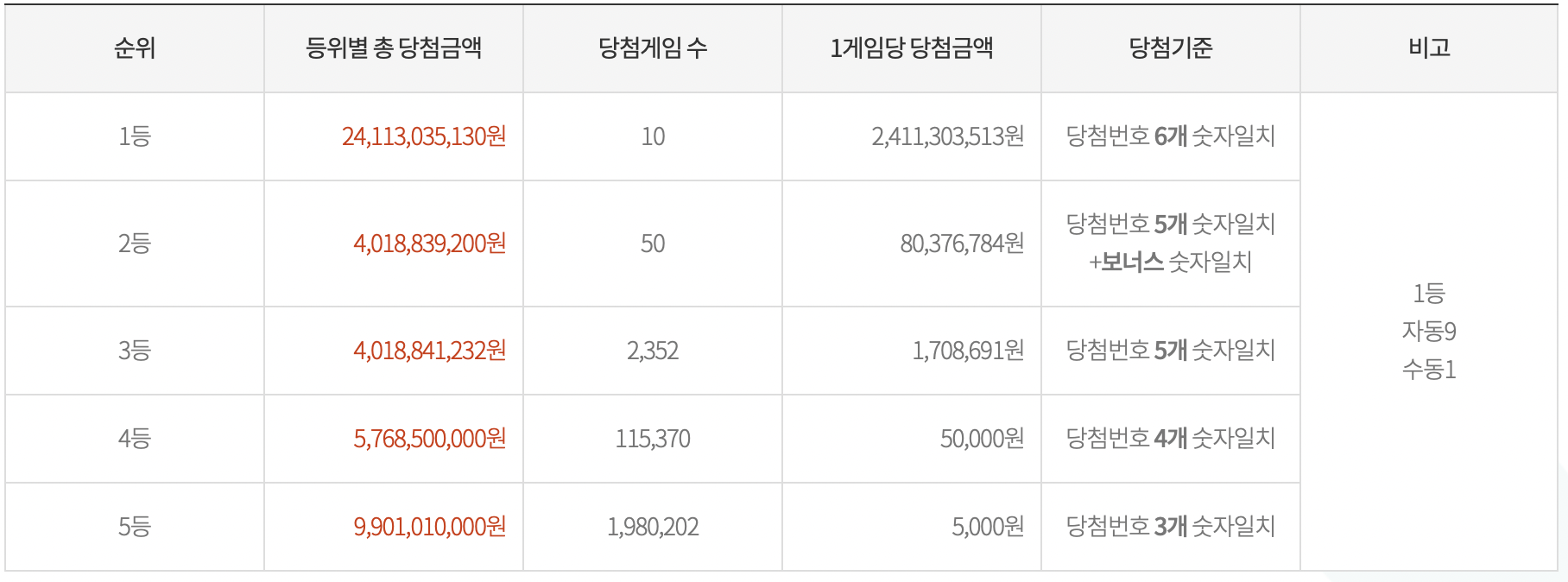 많은 분들이 당첨이 될수록 1등 당첨금액은 줄어듭니다.