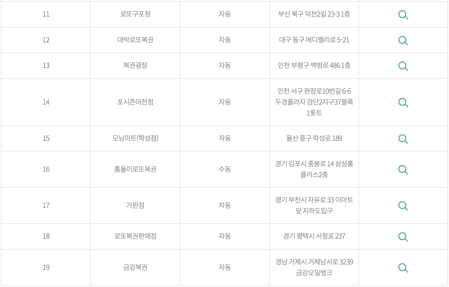 로또 1등 당첨자가 19명이라 당첨지역도 19곳입니다.